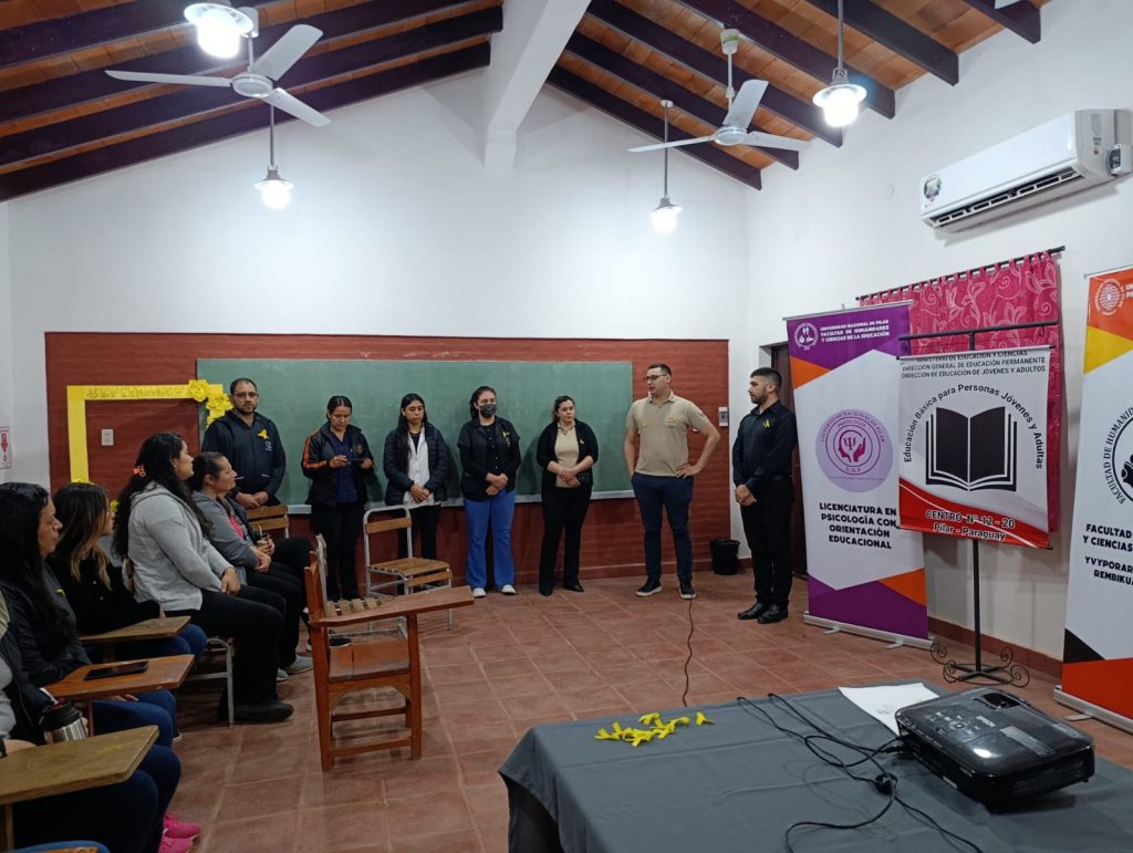 El encuentro estuvo a cargo del Dr. Ernesto Martínez, docente de la institución, acompañado por el extensionista Lic. Renato Mora. También participaron la Lic. Romina Ramírez, la Lic. Noelia Martínez y la Lic. Mónica Carmona, junto a estudiantes del cuarto curso de la Carrera de Psicología con Orientación Educacional.