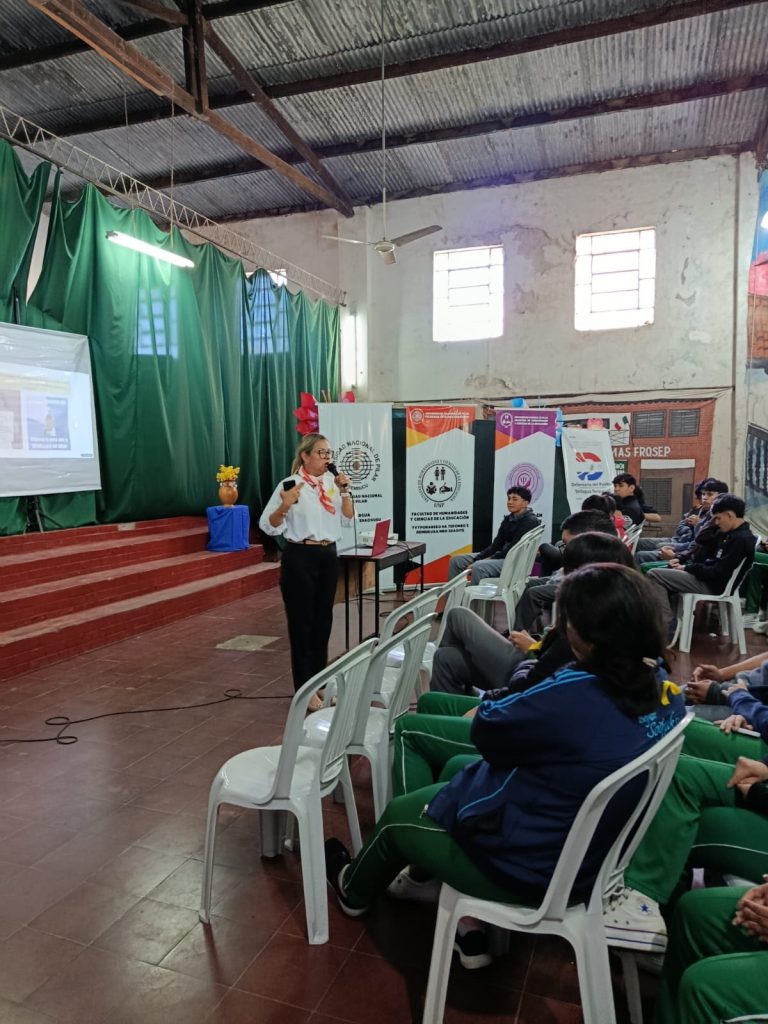 El equipo institucional estuvo encabezado por la Dra Cecilia Aguilera, Decana de la FHyCE, y la Abog. Alicia Lujan Arrúa, Delegada de la DDP. Sigamos apuntando a cuidar la vida de nuestros jóvenes.