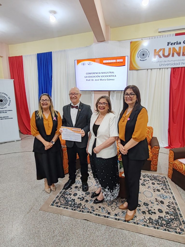 En esta ocasión, el Prof. Dr. José María Gómez ofreció una enriquecedora conferencia magistral titulada «La Educación Sociocrítica», donde abordó temas fundamentales sobre la enseñanza y el aprendizaje en contextos sociales. Su intervención invitó a la reflexión y al debate sobre la necesidad de formar ciudadanos críticos y comprometidos con su entorno.